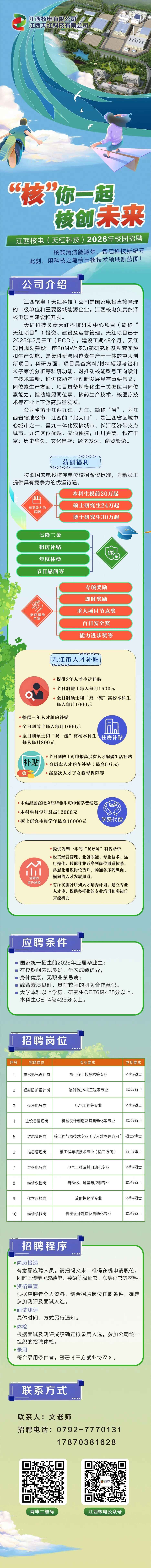 “核”你一起,核创未来│江西核电(天红科技)2026年校园招聘